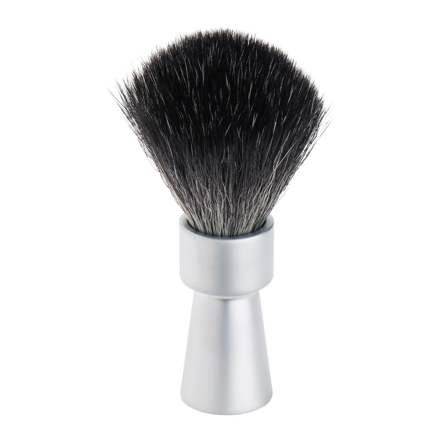 Der Griff dieses Rasierpinsels besteht aus Aluminium und ist glänzend galvanisch matt verchromt, was ihm nicht nur eine edle Optik verleiht, sondern auch für Langlebigkeit sorgt. Der Besatz aus hochwertigem Black Fibre Synthetikhaar ist nicht nur ein optischer Blickfang, sondern auch funktional: Er erzeugt mühelos einen dichten Schaum aus deiner Rasierseife und massiert sanft dein Gesicht, um deine Rasur in ein entspannendes Ritual zu verwandeln. (100% vegan)